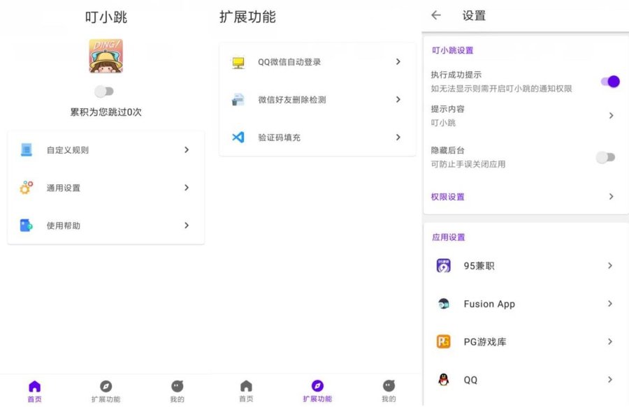 「自动跳过」功能可以快速跳过大多数APP的开屏广告。叮小跳已内置多种规则。
