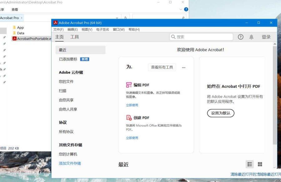 Acrobat DC 2025破解版PDF编辑软件Adobe Acrobat Pro DC 2025绿色便携版是Adobe公司继Acrobat XI之后推出的一款全新PDF文件编辑转换软件。此版本配有直观触控式界面及强大新功能,能够将任何纸质文件转换为可编辑的文件,用于传输、签署和分享。新工具中心使得常用工具更易访问。