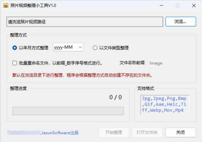 PhotoCollation 照片视频整理工具 可以将同一目录下的所有视频和照片文件按照“年份月份”或“类别”进行分类,一键完成整理。