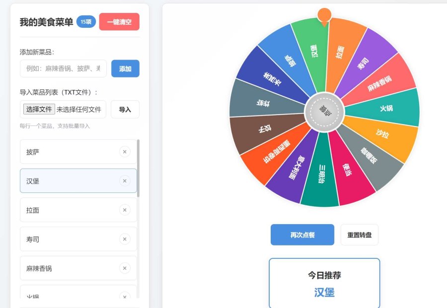 一款帮助您解决“吃什么”难题的趣味点餐助手。通过随机转盘的形式,为您推荐美食选择,并支持自定义菜单,使点餐过程变得轻松又有趣。无论是朋友聚会还是日常用餐,它都是一个很好的决策助手。