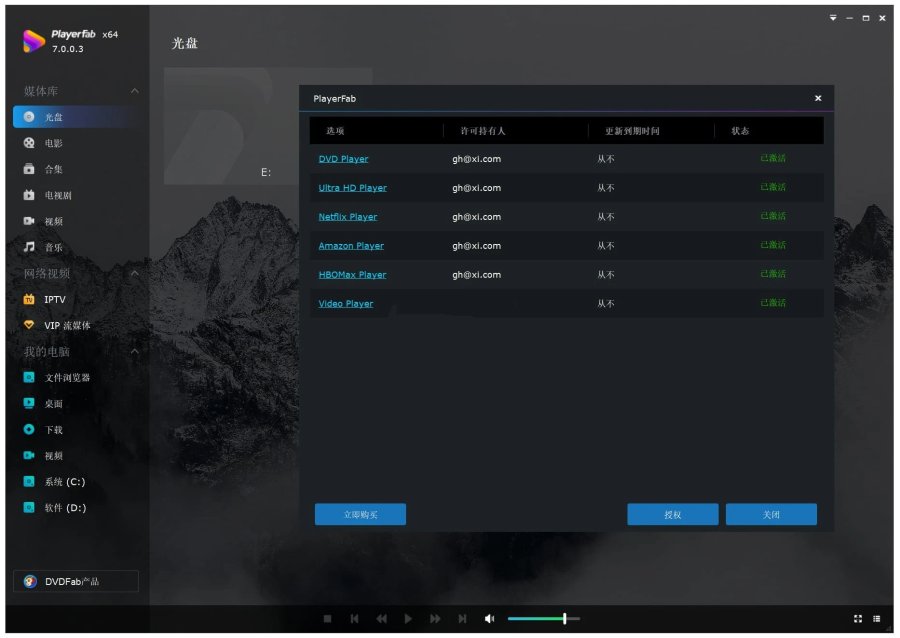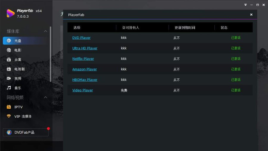 PlayerFab 蓝光播放器, 免激活的中文绿色便携版, 去除联网验证的激活授权版本, 去除多语言更新