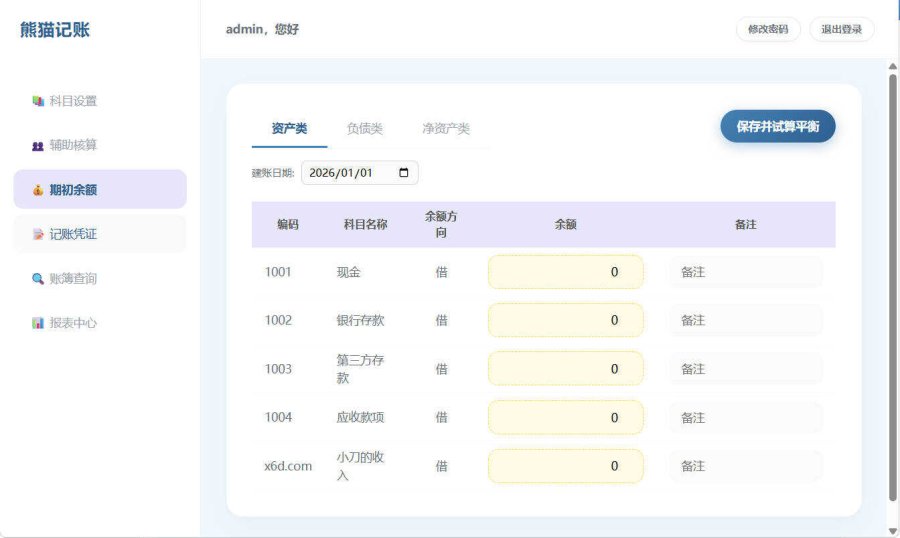 “熊猫记账V1.0”,一款轻量级的个人Web端复式记账工具,专为追求财务清晰度的用户设计。基于浏览器访问,无需安装,跨平台使用便捷。它采用专业的复式记账逻辑,帮助您准确记录每一笔收支,清晰追踪资金流向,实现家庭或个人的账目平衡与财务健康管理,让记账回归简单与科学。