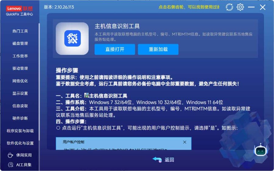 Lenovo Quick Fix是联想官方推出的智能解决工具集合,主要用于解决联想电脑的系统优化、故障修复及性能提升问题。无需安装即可运行,包含驱动管理、游戏闪退检测、系统文件修复等功能模块。通过可视化界面提供一键式操作方案,如电源模式调整、Defender SmartScreen管理等功能,同时具备检测并修复系统运行库、注册表错误等能力。本工具集合多种Lenovo QuickFix实用工具于一身,方便快捷解决电脑各种问题,一键搞定系统优化设置和硬盘清理等等。新开发的工具会自动展示在工具集中,所有工具都是联想官方出品,您可以放心使用。